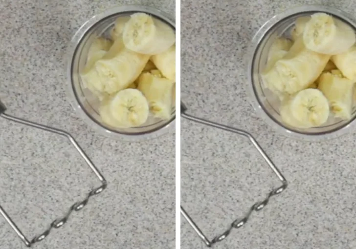 - Use a small masher or a fork to mash the banana pieces inside the container. The bananas do not need to be perfectly smooth because the Ninja Creami blade will process the mixture later. Mash until the fruit becomes a thick, chunky mash.