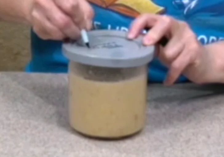 - After freezing, remove the lid and inspect the surface. Freezing sometimes causes the center to rise unevenly. If the surface is not level, scrape it gently with a spoon until it looks mostly flat. This step prevents the blade from hitting a raised section during processing.