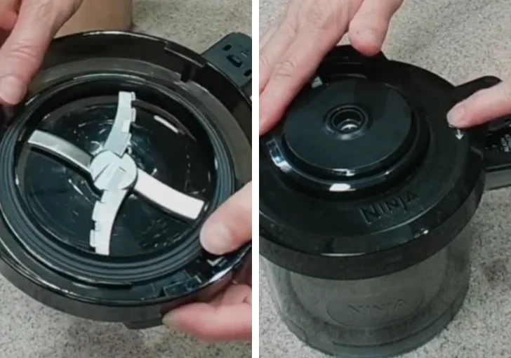 Insert the Creami blade paddle into the outer bowl lid and secure it in place. Place the frozen pint into the outer container, making sure the bottom grooves align properly so it locks into position.