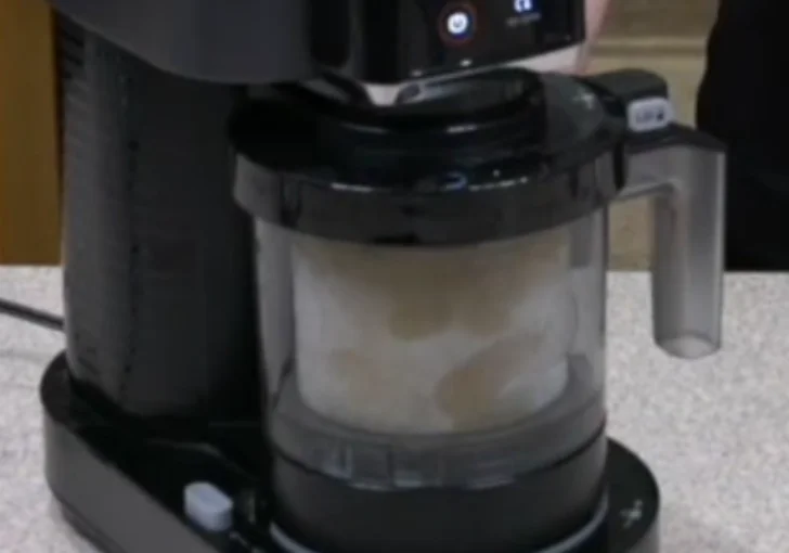 Once the cycle finishes, open the container and examine the ice cream. If the texture looks slightly powdery or has small ice crystals, run the Re-Spin function once to smooth it out. If it appears very crumbly, run the Smoothie Bowl cycle again.