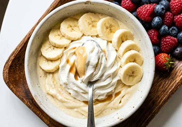 Classic bowl with whipped topping – Scoop the banana pudding ice cream into a bowl and top with fat-free whipped cream. It’s creamy, sweet, and brings back that classic banana dessert feeling you’ll love.