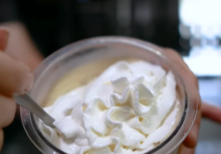 After pouring the mix into the pint, I tap it gently on the counter to level it out. A smooth, flat top helps the Ninja Creami spin everything evenly and avoids dry spots.