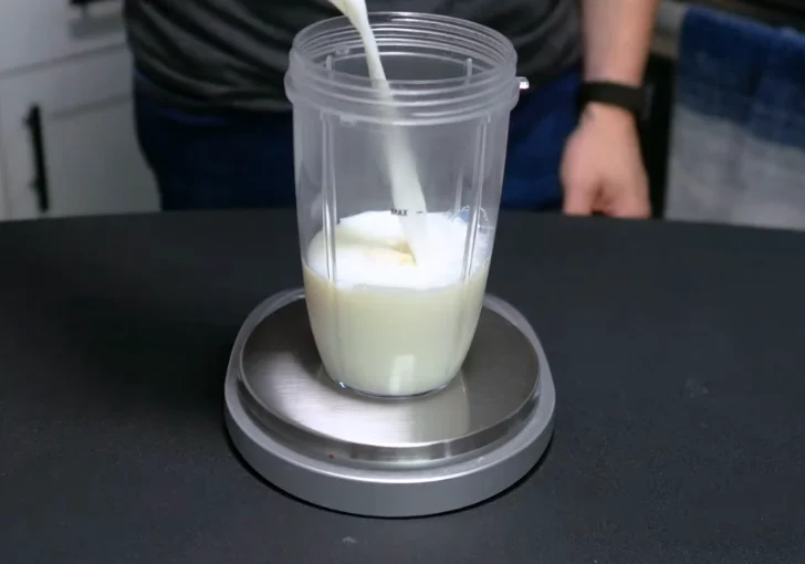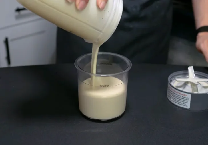 Pour the blended mixture into a Ninja Creami pint container. Secure the lid tightly.