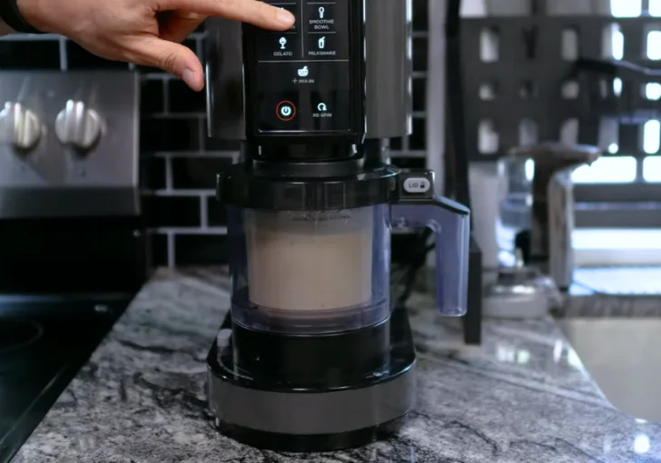 Insert the pint into the Ninja Creami machine and process using the “Light Ice Cream” setting. Allow the full cycle to complete.