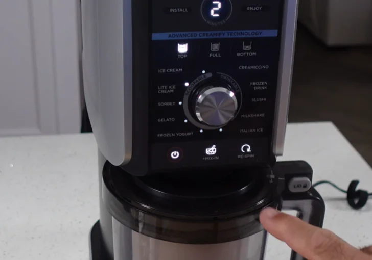 After removing the pint from the freezer, I always let it sit on the counter for about 10–15 minutes. This small rest softens the edges of the frozen base so the machine can process it more smoothly.