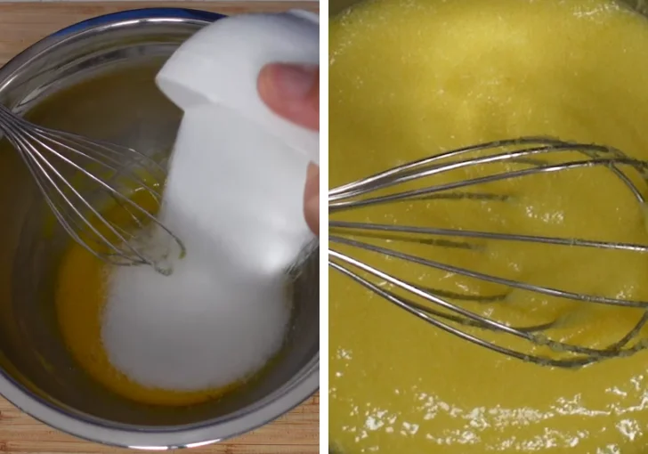 - Add the monk fruit sweetener to the beaten egg yolks. Stir until the sweetener is fully combined with the yolks and no visible granules remain. The mixture should look smooth and evenly blended.