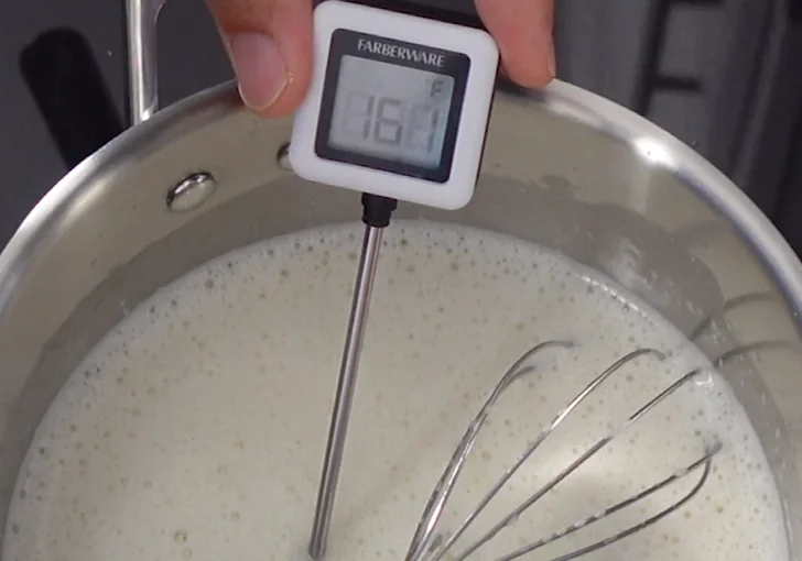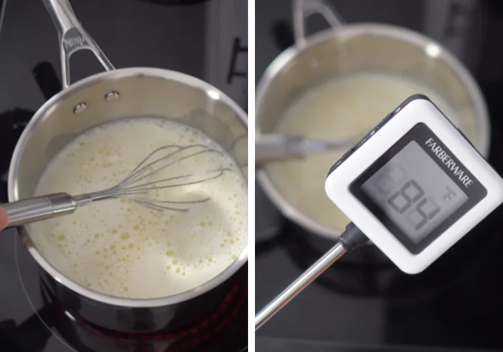 - Continue heating the mixture until it reaches 165°F (74°C). This temperature safely tempers the egg yolks while thickening the base slightly. Remove the saucepan from the heat once it reaches this temperature.