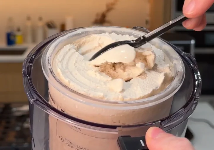 6. Repeat the respin process until the mixture becomes smooth and soft-serve-like. The final texture should be creamy, slightly airy, and easy to scoop.