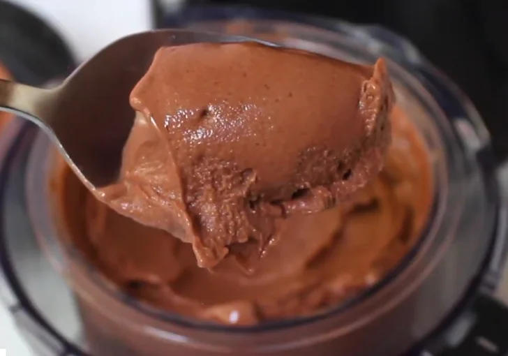 Add one tablespoon chocolate protein powder to the base before freezing. Mix well so it dissolves. The ice cream becomes thicker and adds extra protein.