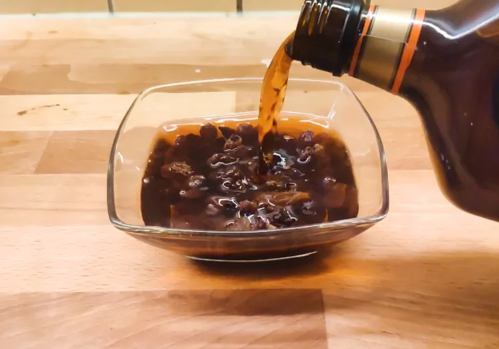 7. Add raisins to a bowl and pour rum over them. Let the raisins soak while the base freezes. This allows them to absorb the rum and become soft and flavorful. Before using, drain any excess liquid so it does not affect the ice cream texture.